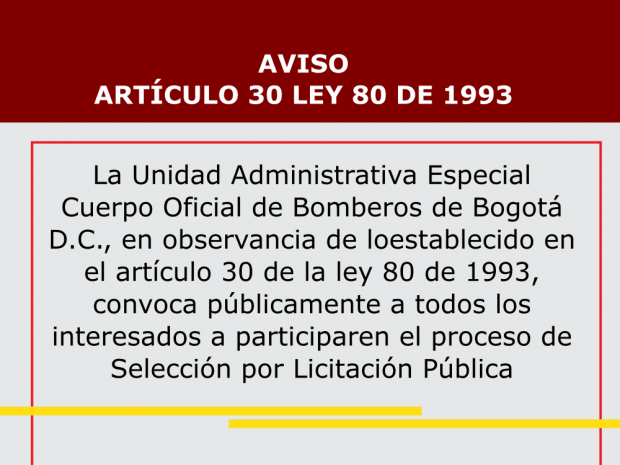 La Unidad Administrativa Especial Cuerpo Oficial de Bomberos de Bogotá D.C., en observancia de lo establecido en el artículo 30 de la ley 80 de 1993, convoca públicamente a todos los interesados a participar en el proceso de Selección por Licitación Pública