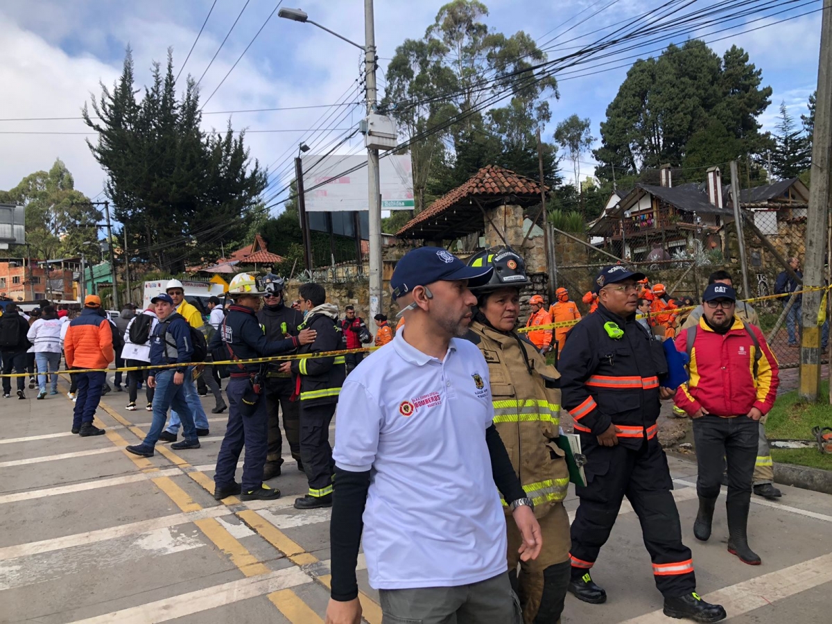 Nuestro director de Bomberos Bogotá, Diego Moreno Bedoya, muestra desde el sector de Alboretes, en la vía a La Calera, cómo avanzan los trabajos de búsqueda y de reducción del represamiento existente, producto del deslizamiento producido el sábado anterior por las fuertes lluvias. Se adelanta un trabajo articulado con la comundad y con las autoridades, de manera coordinada y liderada por parte de la alcaldesa Claudia López.