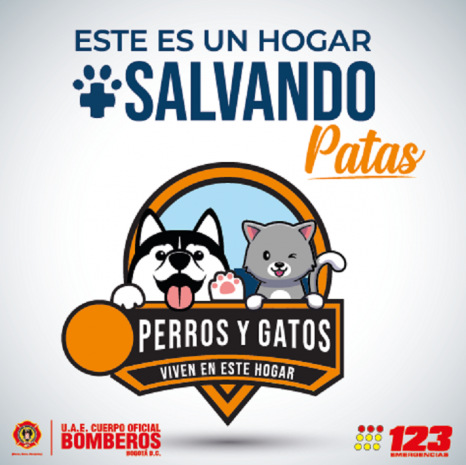 Buscando identificar las viviendas que tengan mascotas, para que, en caso de presentarse una emergencia, los bomberos sepan que deben tener en cuenta también a los animales de compañía para ser rescatados, la entidad lanza la campaña SALVANDO PATAS, con la cual, mediante una calcomanía que se podrá ubicar en la puerta de las viviendas, se logrará identificar a perros, gatos o animales pequeños que habitan el lugar.