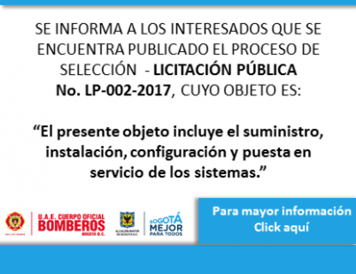 SE INFORMA A LOS INTERESADOS QUE SE ENCUENTRA PUBLICADO EL PROCESO DE SELECCIÓN - LICITACIÓN PÚBLICA No. LP-002-2017