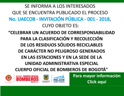 SE INFORMA A LOS INTERESADOS QUE SE ENCUENTRA PUBLICADO EL PROCESO No. UAECOB - INVITACIÓN PÚBLICA - 001 - 2018