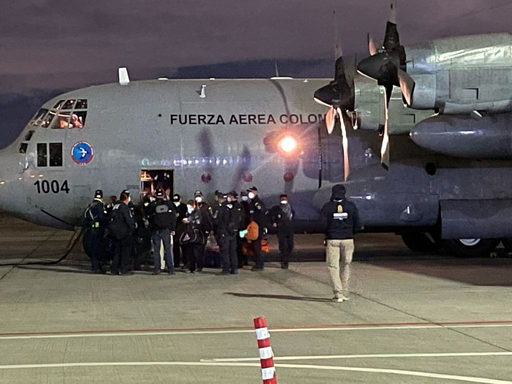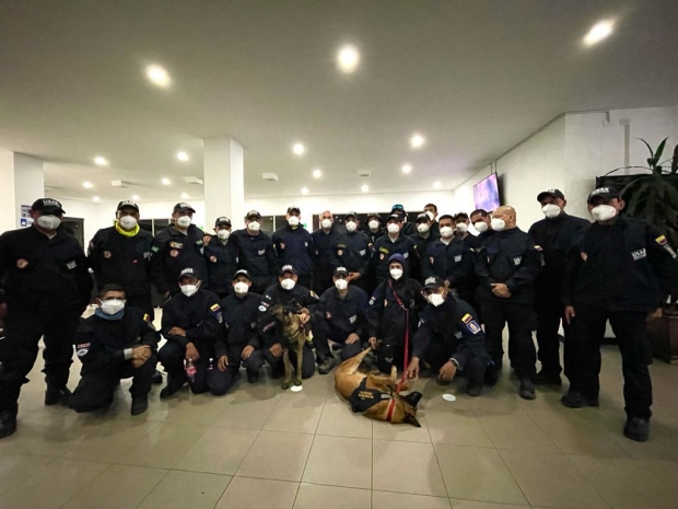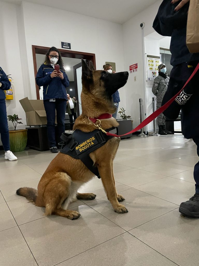 En la noche del 22 de agosto, regresaron a Colombia 22 miembros de Bomberos Bogotá, y dos caninos