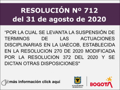 “Por la cual se levanta la suspensión de términos de las actuaciones disciplinarias en la UAECOB, establecida en la resolución 270 de 2020 modificada por la resolución 372 del 2020 y se dictan otras disposiciones"
