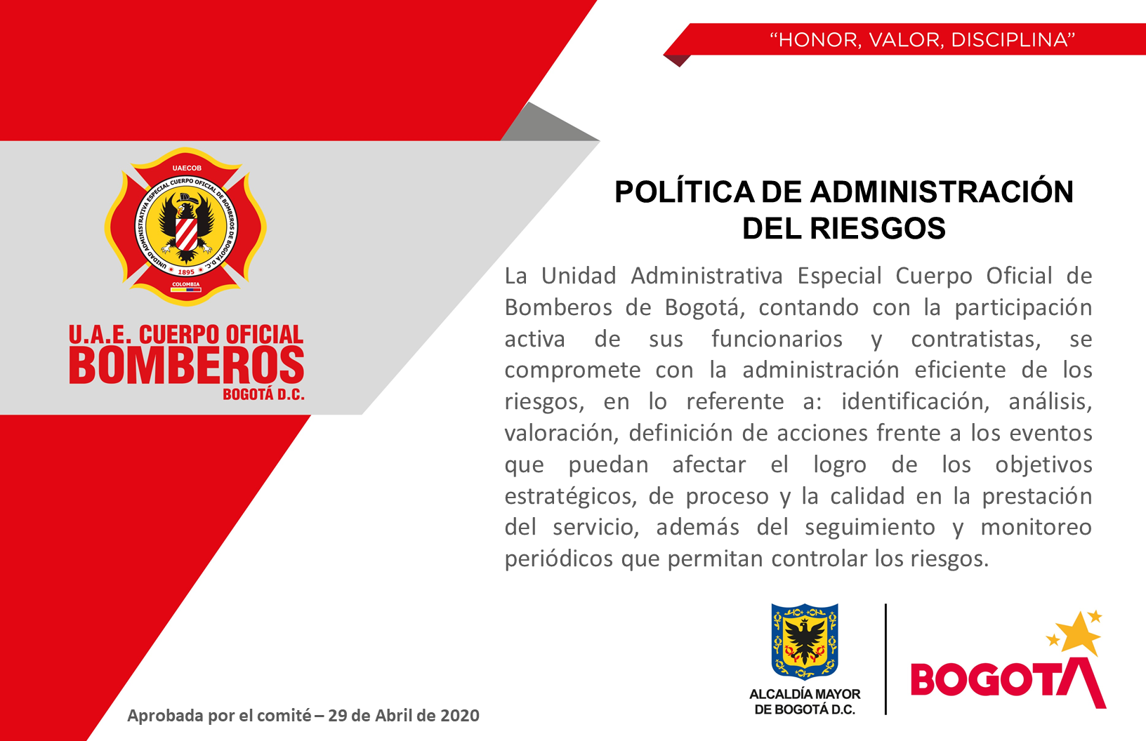 Política Administración del Riesgo de la Unidad Adminitrativa Especial Cuerpo Oficial Bomberos de Bogotá - aprobada por el comité y publicada el...